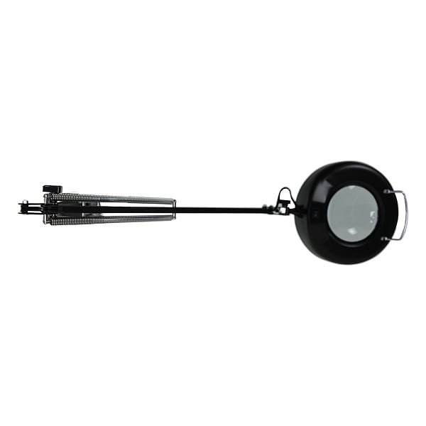 Magnifier Light, Arm Design Articulating, Arm Reach 38 in, Clamping Capacity 2 in, Color Black, Color Rendering Index 80, Color Temperature 4500K, 5000K, Diopter 5, Lens Diameter 5 in, Lens Material Glass, Lens Shape Round, Lighting Technology LED, Magnification 2.25X, Maximum Brightness 600 lm, Mount Type Clamp, Operating Voltage 100-240AC, Includes Ultraviolet Light No, Application Inspection/Assembly in Laboratories, Production Areas, QC Inspection, Rework Areas