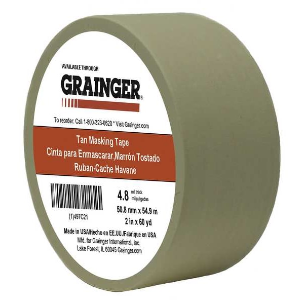 Masking Tape, 2 in W x 60 yd L, 4.8 mil Thick, Tan, Rubber Adhesive
