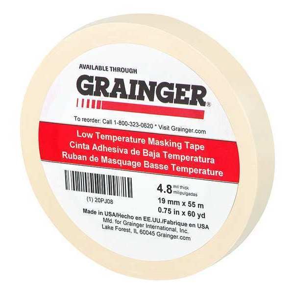Masking Tape, 3/4 in W x 60 yd L, 4.8 mil Thick, Tan, Rubber Adhesive