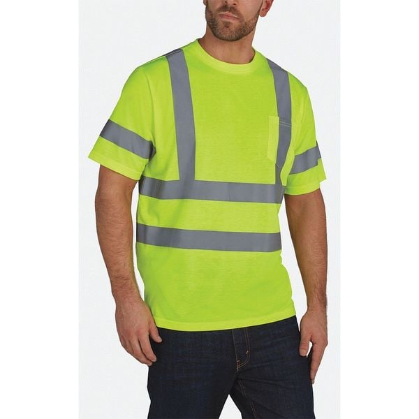 Short Sleeve T-Shirt, Gender Men's, ANSI Class 3, Shirt Style T-Shirt, Material Polyester, DuPont(TM) PTFE fabric protector, Number of Outside Pockets 1, Color Orange/Yellow, Size 4XL, Standards ANSI 107-2010 Class 3, Maximum Chest Size 60 in, ANSI Type Class 3, Features Teflon(R) Fabric Protector Forms a Molecular Barrier Around Each Fiber, Length 34 in, Maximum Neck Size 20.5 in, Minimum Chest Size 58 in, Minimum Neck Size 20 in