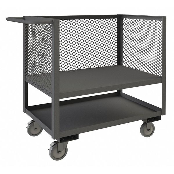Open-Sided Raised-Platform Box Truck, Load Capacity 1,200 lb, Material Steel, Finish Powder Coated, Gauge 14 ga, Overall Height 40 1/8 in, Overall Length 42 1/2 in, Overall Width 30 3/8 in, Handle Type Flat, Lid/Cover Type No Lid