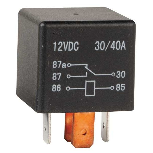 Automotive Relay, Coil Voltage 12V DC, Contact Form SPDT, Contact Rating (DC) 20 A @ 12V, Number of Pins 5, Pin Configuration B1, Mounting Style Plug-In, Application Change Over, Body Depth 1.03 in, Body Height 0.93 in, Body Width 1.03 in, Housing Material Nylon, Overall Depth 1.03 in