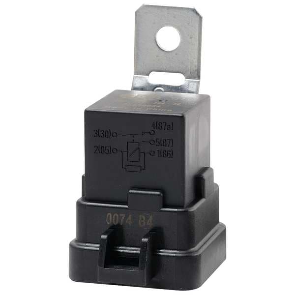 Automotive Relay, Coil Voltage 12V DC, Contact Form SPDT, Contact Rating (DC) 24 A @ 12V, Number of Pins 5, Pin Configuration B1, Mounting Style Plug-In, Application Change Over, Body Depth 1.28 in, Body Height 1.77 in, Body Width 1.03 in, Features Resistor, Housing Material Nylon, Overall Depth 1.28 in