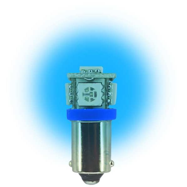 Miniature Bi-Polar LED Bulb, Trade Number L24V-MB-B, Bulb Shape T3-1/4, Bulb Base Type Miniature Bayonet (BA9s), 24 Voltage, General Purpose, 0.7 Watts, Bulb Type Miniature, Light Appearance No Rated Color Temp, Blue, 0.03mA Bulb Amps, Average Bulb Life 100,000 hr., Light Color Blue, Light Bulb Dia. 13/32 In., Bulb Housing Glass, Indoor Only, Standards Meets 2012 Lighting Legislation Energy, Replaces Bulb 313, 757, 1818, 1819, 1820, 1829, 1849, 1864, 1873, 1450