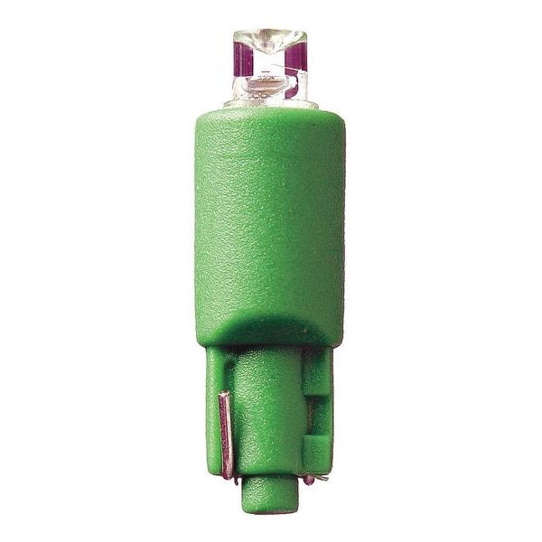 Miniature Bi-Polar LED Bulb, Trade Number LM0512WB, Bulb Shape T1-3/4, Bulb Base Type Plastic Wedge (W2.1x4.9d), 12 Voltage, General Purpose, 0.2 Watts, Bulb Type Miniature, Light Appearance No Rated Color Temp, Green, 20mA Bulb Amps, Average Bulb Life 100,000 hr., Light Color Green, Light Bulb Dia. 3/16 In., Bulb Housing Glass, Indoor Only, Standards Meets 2012 Lighting Legislation Energy, Replaces Bulb 18,37,70,73,74