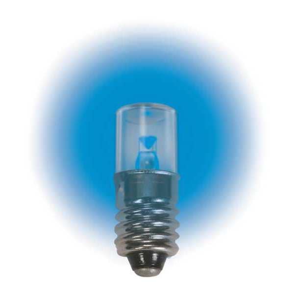 Miniature Bi-Polar LED Bulb, Trade Number LM1006MS-B, Bulb Shape T3-1/4, Bulb Base Type Miniature Screw (E10), 6.3 Voltage, General Purpose, 0.5 Watts, Bulb Type Miniature, Light Appearance No Rated Color Temp, Blue, 75mA Bulb Amps, Average Bulb Life 100,000 hr., Light Color Blue, Light Bulb Dia. 13/32 In., Bulb Housing Glass, Indoor Only, Standards Meets 2012 Lighting Legislation Energy, Replaces Bulb 40,46,50,133,134,401,438,502,1482