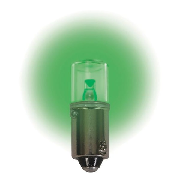 Miniature LED Bulb, Trade Number LM10160MB-G, Bulb Shape T3-1/4, Bulb Base Type Miniature Bayonet (BA9s), 160 Voltage, General Purpose, 0.7 Watts, Bulb Type Miniature, Light Appearance No Rated Color Temp, Green, 0.30mA Bulb Amps, Average Bulb Life 100,000 hr., Light Color Green, Light Bulb Dia. 13/32 In., Bulb Housing Glass, Indoor Only, Standards Meets 2012 Lighting Legislation Energy, Replaces Bulb 160MB