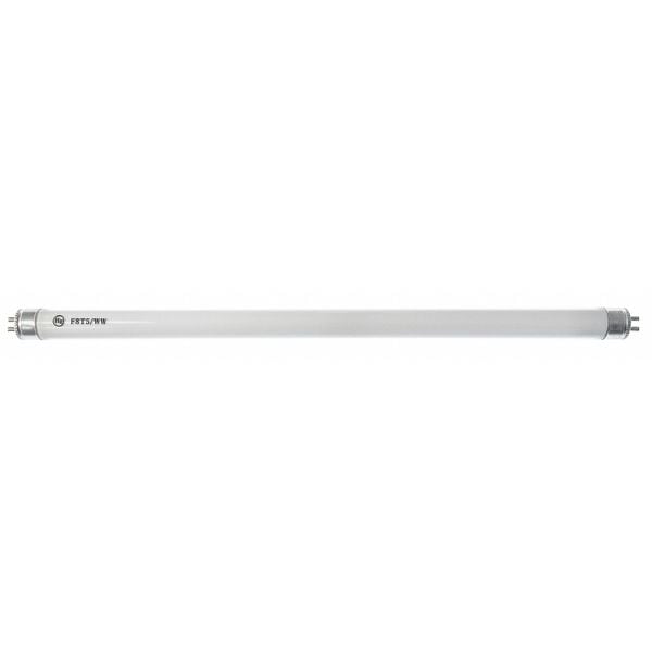 Linear Fluorescent Bulb, Bulb Base Type Miniature Bi-Pin (G5), Bulb Housing Glass/Metal, Bulb Shape T5, Color Rendering Index 53, Color Temperature 3000K, Lumens 435 lm, Light Technology Fluorescent, Nominal Length 1 ft, Shatter-Resistant No, Watts 8 W, Voltage 120V AC, Standards Meets 2012 Lighting Legislation Energy Standards, Amps 65 mA, Bulb Start Type Line Voltage, High Output No, Overall Length 12 in, Rated Life 7,500 hr, Bulb Finish Frosted