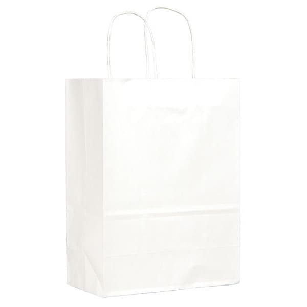 Bag Type Standard Merchandise Bag, Paper, Thickness Not Applicable, White, Handle Type Paper Twist, Message Not Applicable, Bag Bottom Type Flat, Shopping Bag, Package Configuration Bundle, Recycled Content Not Made From Recycled Content, FDA Compliant FDA Compliant, Width 10 in, Depth 5 in, Height 13 in, Package Quantity 250