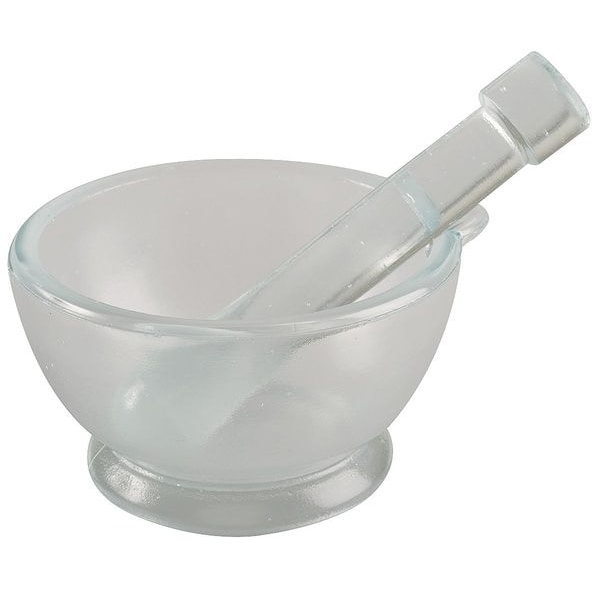 Mortar and Pestle Set, Mortar Material Glass, Pestle Material Glass, Inside Diameter 75 mm, Mortar Height - Metric 50 mm, Capacity 30 mL, Pestle Length 100 mm, Product Type Mortar and Pestle Set, Package Quantity 8
