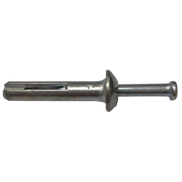 Hammer Drive Pin Anchor Set, Anchor Diameter 1/4 in, Overall Length 1 1/2 in, Thread Size Not Applicable, Thread Length Not Applicable, Anchor Material Zamac Alloy, Pin Material Steel, Finish Zinc Plated, Head Type Mushroom, Drill Bit Size 1/4 in, Minimum Installation Depth 3/4 in, Maximum Material Thickness 3/4 in, Ultimate Tension Strength (4,000 psi Concrete) 946 lb, Pin-Drive Anchor Type Metal Removable Nail Drive Anchor, System of Measurement Inch