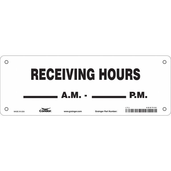 Safety Sign, Vertical Rectangle, Number of Printed Sides 1, English, Sign Format Other Format, Sign Legend Receiving Hours ___ A.M.-___ P.M., Sign Legend Background Color White, Sign Legend Style Text