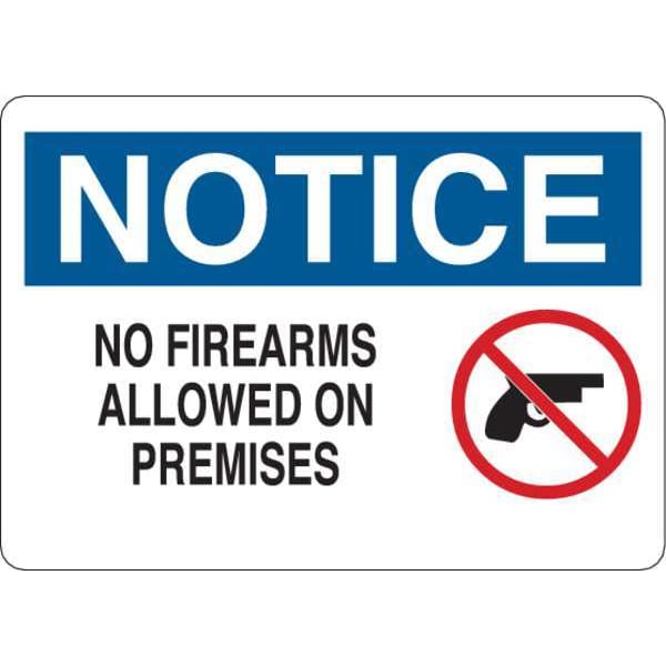 Notice, No Firearms Allowed On Premises, 10 in W x 7 in H, Aluminum