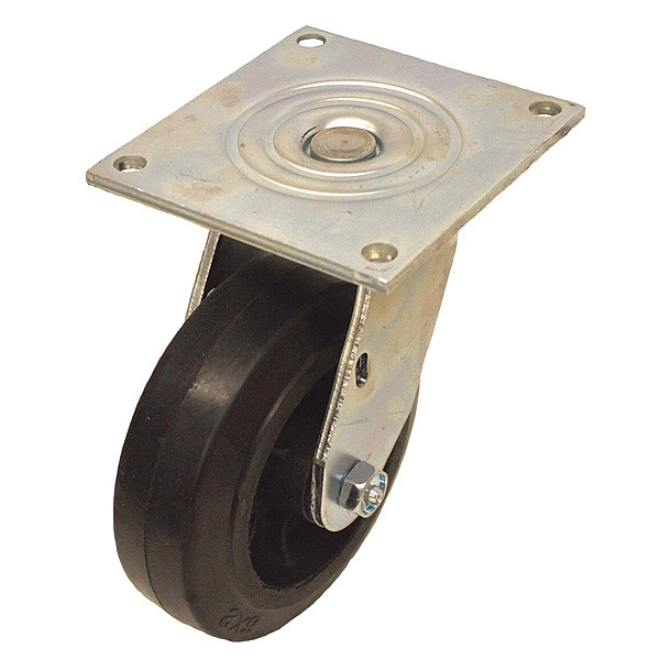 Swivel, Plate Caster, Load Rating 600 lb, Swivel Lock Type No Lock Included, Wheel Dia. 8 in, Wheel Width 2 in, Wheel/Tread Material Rubber, Wheel Core Material Iron, Non-Marking No, Number of Wheels 1, Caster Brake Type No Brake, Tread Shape Standard