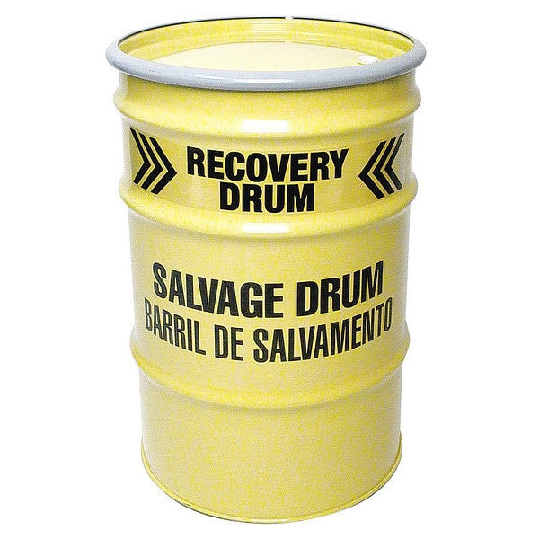 Salvage Drum, Body Color Yellow, Body Material Gauge 18 ga, Body Thickness 1.1 mm, Bottom Material Gauge 18 ga, Closing Ring Material Steel, Cover Color Yellow, Cover Material Carbon Steel, Drum Closure Bolt Ring, Drum Head Type Open Head, Interior Lining Epoxy Phenolic, Number of Bung Holes 0, Overall Height 29 in, Top Material Gauge 18 ga, Top Outside Diameter 20 in, UN Rating Liquids Not Rated, UN Rating Solids 1A2/Y400/S, Volume Capacity 30 gal