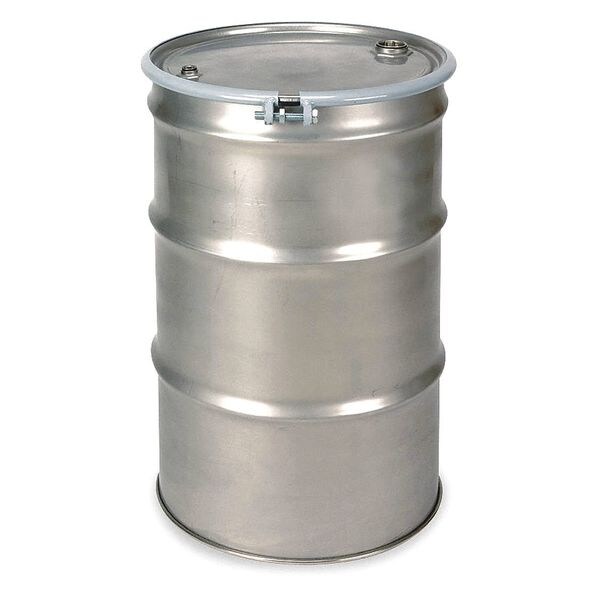 Transport Drum, Body Color Gray, Body Material Gauge 16 ga, Body Thickness 1.5 mm, Bottom Material Gauge 16 ga, Closing Ring Material Steel, Cover Color Gray, Cover Material 304 Stainless Steel, Drum Closure Bolt Ring, Drum Head Type Open Head, Interior Lining Unlined/No Interior Coating, Number of Bung Holes 2, Overall Height 34 1/2 in, Top Material Gauge 16 ga, Top Outside Diameter 23 in, UN Rating Liquids 1A2/Y1.5/200, UN Rating Solids 1A2/X430/S, Volume Capacity 55 gal
