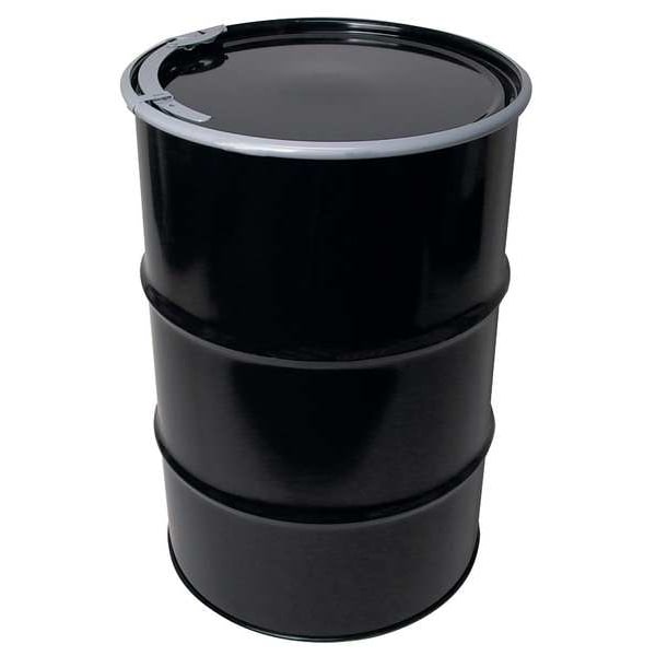 Transport Drum, Body Color Black, Body Material Gauge 20 ga, Body Thickness 0.9 mm, Bottom Material Gauge 18 ga, Closing Ring Material Steel, Cover Color Black, Cover Material Steel, Drum Closure Lever Lock Ring, Drum Head Type Open Head, Interior Lining Unlined with Rust Inhibitor, Number of Bung Holes 0, Overall Height 34 1/4 in, Top Material Gauge 18 ga, Top Outside Diameter 23 1/2 in, UN Rating Liquids Not Rated, UN Rating Solids Not Rated, Volume Capacity 55 gal, Drum Message Text None