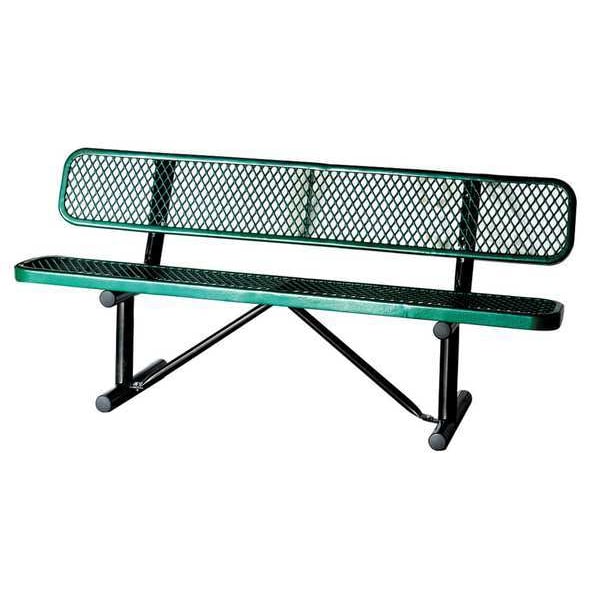 Outdoor Bench, Frame Material Steel, Includes Back Yes, Mounting Location Portable, Overall Depth 24 in, Overall Height 32 1/2 in, Overall Length 72 in, Seat Coating/Finish Thermoplastic Coated, Seat Color Green, Seat Structural Material Metal, Weight Capacity 600 lb, Frame Color Black, Surface Texture Diamond Mesh, Assembly Unassembled, Back Height 11 1/2 in, Board Width Not Applicable, Edge Style Rounded, Features Easy Graffiti Removal, Weather Resistant, Frame Finish Powder Coated