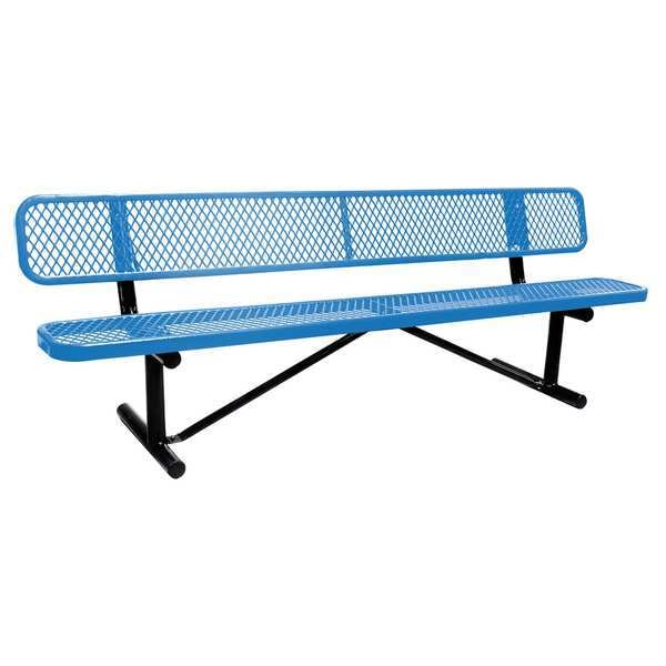 Outdoor Bench, Frame Material Steel, Includes Back Yes, Mounting Location Portable, Overall Depth 24 in, Overall Height 32 1/2 in, Overall Length 96 in, Seat Coating/Finish Thermoplastic Coated, Seat Color Blue, Seat Structural Material Metal, Weight Capacity 800 lb, Frame Color Black, Surface Texture Diamond Mesh, Assembly Unassembled, Back Height 11 1/2 in, Board Width Not Applicable, Edge Style Rounded