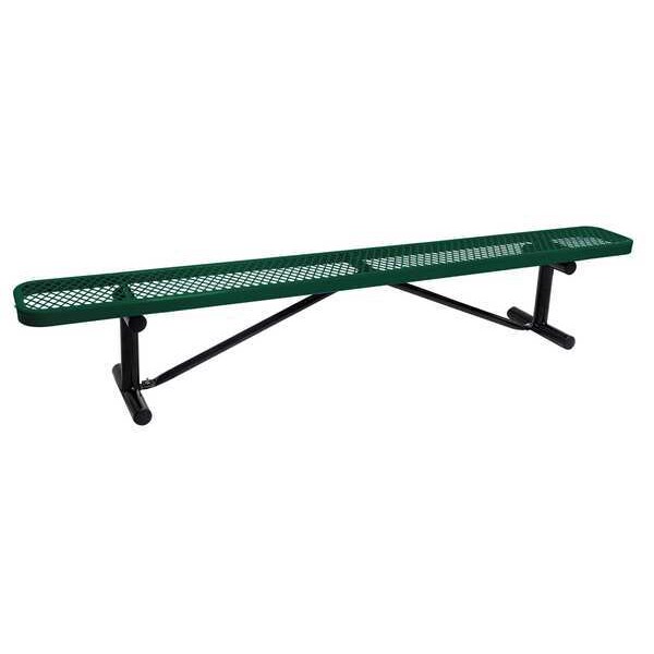 Outdoor Bench, Frame Material Steel, Includes Back No, Mounting Location Portable, Overall Depth 12 in, Overall Height 16 3/8 in, Overall Length 96 in, Seat Coating/Finish Thermoplastic Coated, Seat Color Green, Seat Structural Material Metal, Weight Capacity 800 lb, Frame Color Black, Surface Texture Diamond Mesh, Assembly Unassembled, Back Height Not Applicable, Board Width Not Applicable, Edge Style Rounded