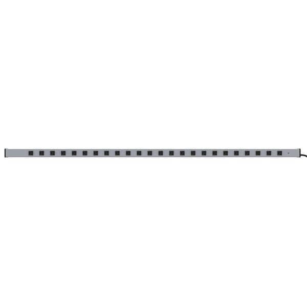 Outlet Strip, Application Workbench and Cabinet, Housing Material Aluminum, Total Number of Outlets 24, Max. Amps 15 A, Cord Length 15 ft, Number of Power Switches 0, Power Indicator No, Number of Outlet Rows 1, Receptacle Configuration NEMA 5-15R, Plug Configuration NEMA 5-15P, Wire Size 14 AWG, Mounting Style Vertical, Color Gray, Medical Facility Use Not Allowed, Number of Transformer Outlets 0, Number of Conductors 3, Voltage 125V AC, Outlet Center Distance 2 1/2 in, Length 72 in