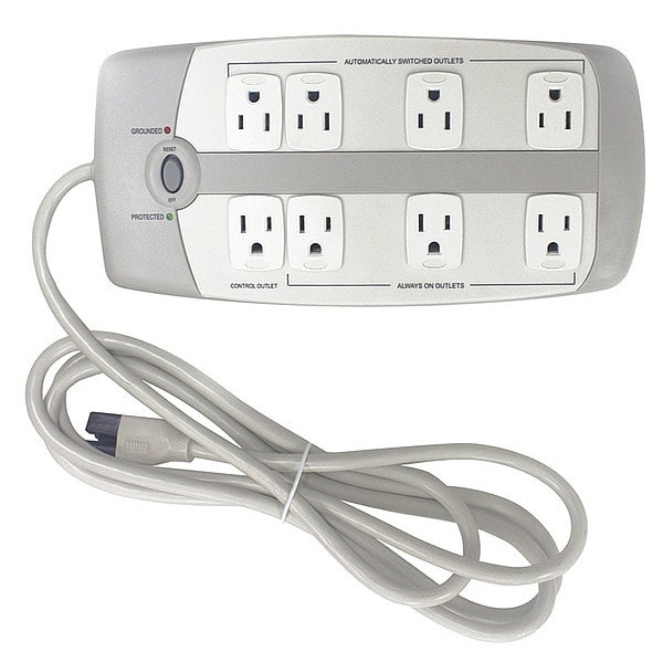 Outlet Strip, Surge, 8 5-15R, 5-15P, 6 ft., Gray