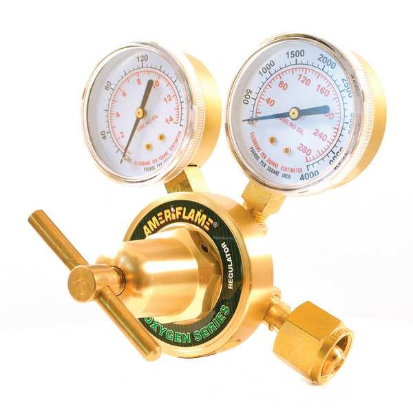 Oxygen Regulator, Number of Stages Single Stage, Compatible Gas Type Oxygen, Control Type T-Handle, Inlet Connection Type NGO, Inlet Connection Gender Male, Inlet Connection Size 0.908 In.-14, Outlet Pressure (Maximum) 125 psig, Outlet Connection Gender Male, Outlet Connection Size 9/16 In.-18, Outlet Connection Type UNF, Body Material Brass, Body Finish Polished, Diaphragm Material Stainless Steel; Rubber, CGA Number CGA 540, Inlet Pressure (Maximum) 3,000 psig