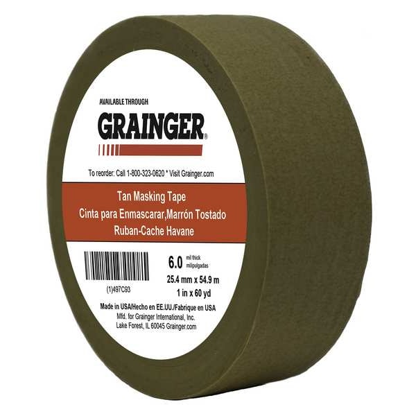 Packaging Tape, 1 in W x 60 yd L, 5.7 mil Thick, Tan, Rubber Adhesive