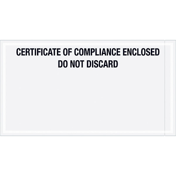 Packing List Envelopes, Packing List Type Transportation, Opening Location Side Loading, Message Certificate of Compliance Enclosed, Outside Height 11 in, Outside Length 6 in, Color Black, Message Location Top, Package Quantity 1000