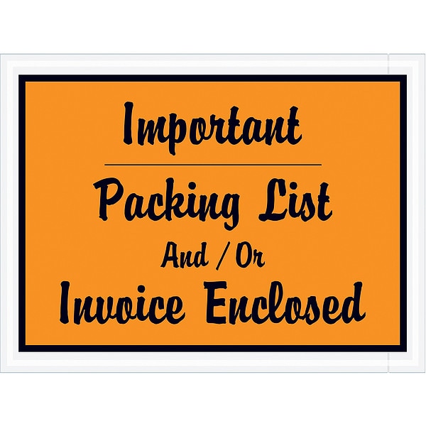 Packing List Envelopes, Packing List Type Transportation, Opening Location Side Loading, Message Important Packing List and/or Invoice Enclosed, Outside Height 6 in, Outside Length 4 1/2 in, Color Orange, Message Location Centered, Package Quantity 1000