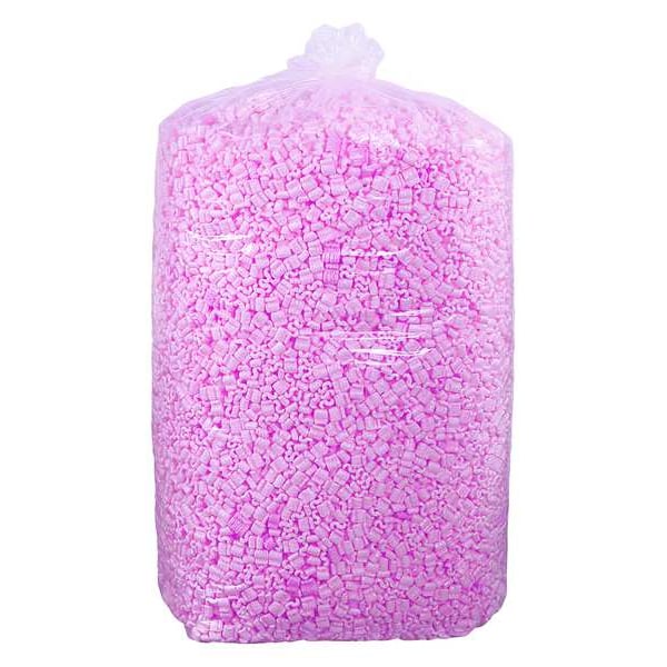 Packing Peanuts, Peanut Type Virgin Polystryrene, Bag Size 20 cu ft, Peanut Color Pink, Peanut Shape S-Shaped, Bag Height 45 in, Material Polystyrene