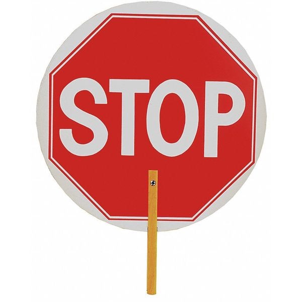 Paddle Sign, Legend Stop/Stop, Reflective Grade Reflective, Includes Lights No, Handle Length 10 in, Overall Height 28 in, Sign Color Red, Number of Sides with a Legend 2, Sign Height 18 in, Sign Material Hardboard, Sign Width 18 in, Includes 10 in Handle, Includes Batteries No