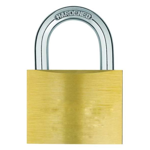 Padlock, Keyed Different, Standard Shackle, Rectangular Brass Body, Hardened Steel Shackle, 1 in W