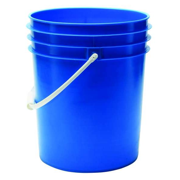 Storage Pail, Bucket/Pail Material Plastic, Color Blue, Handle Material Plastic, Head/Closure Type Open Head, Includes Lid Lid Not Included, Maximum Operating Temperature 150 Degrees F, Overall Diameter 12 3/8 in, Overall Height 14 3/4 in, Overall Width Not Applicable, Shape Round, Standards FDA Approved, UN Rated, Volume Capacity 5 gal, FDA Approved FDA Compliant, NSF Standards Not NSF Certified, UN Standards 1H2/Y1.5/30, Overall Length Not Applicable, Autoclaveable Not Autoclavable Material