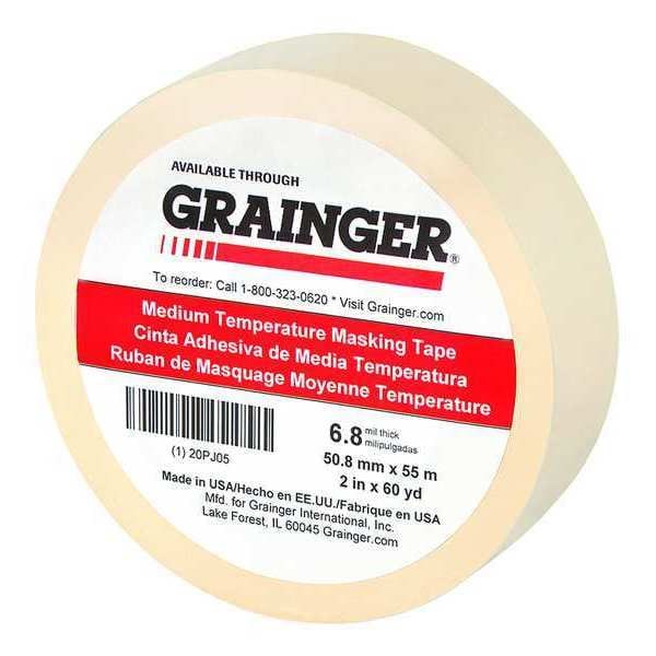 Painter's Tape, 2 in W x 60 yd L, 6.8 mil Thick, Tan, Rubber Adhesive