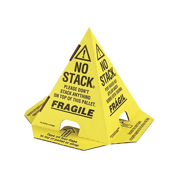 Pallet Cones, Material Corrugated, Base Length 8 in, Base Width 8 in, Height 10 in, Color Black, Yellow, For Max. Strap Width 2 in, Language Trilingual, Package Quantity 50