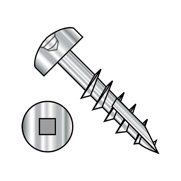 10-9X1 1/2 Square Drive Pan Head Deep Thread Screw Type 17 2/3 Thread 18 8 Stainless Steel
