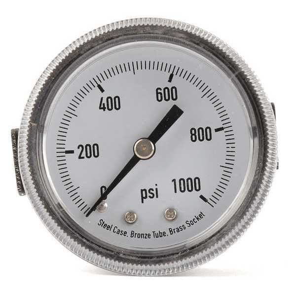 Panel-Mount Pressure Gauge, Nominal Dial Size 2 in, Accuracy +/-3-2-3 Percent, Gauge Case Material Steel, Process Connection Type NPT, Process Connection Gender Male, Lens Material Polycarbonate, Process Connection Size 1/4 in, Field Fillable No, Process Connection Location Center Back, Case Color Black, IP/NEMA Rating Not Rated, Primary Pressure Range 0 to 1,000, Dry Dampening Feature None, Vibration Resistance None, Dial Color White, Pressure Gauge Type Commercial Pressure Gauge