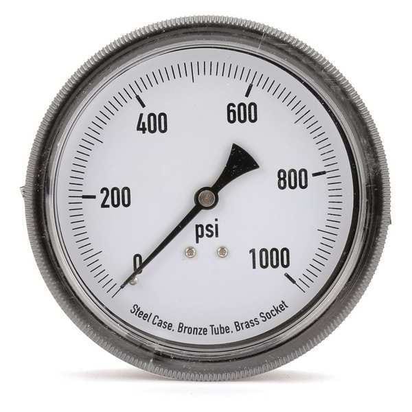 Panel-Mount Pressure Gauge, Nominal Dial Size 3 1/2 in, Accuracy +/-3-2-3 Percent, Gauge Case Material Steel, Process Connection Type NPT, Process Connection Gender Male, Lens Material Polycarbonate, Process Connection Size 1/4 in, Field Fillable No, Process Connection Location Center Back, Case Color Black, IP/NEMA Rating Not Rated, Primary Pressure Range 0 to 1,000, Dry Dampening Feature None, Vibration Resistance None, Dial Color White, Pressure Gauge Type Commercial Pressure Gauge