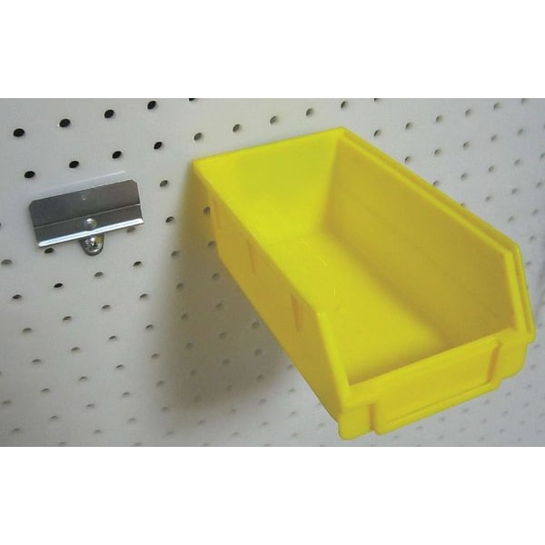 Pegboard Bin, Overall Height 3 in, Overall Length 7 1/2 in, Overall Width 4 1/8 in, Surface, Screw-In Locking System, Circle For Pegboard Hole Shape, Steel, Yellow, Bin Accessory Type, Clips, Package Quantity 24