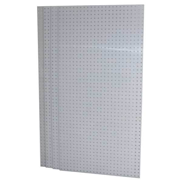 Pegboard Panel, Peg Hole Shape Round, Peg Hole Size 9/32 in, Peg Hole Spacing 1 in, Panel Pegboard Type, 275 lb Panel Load Capacity, Overall Depth 1/4 in, Overall Height 24 in, Overall Width 48 in, Storage Area 8 sq ft, Number of Usable Sides 1, Number of Hooks 0, Number of Panels 4, 1,100 lb Whole Unit Load Capacity, White, Epoxy Coated, Polypropylene, Package Quantity 4