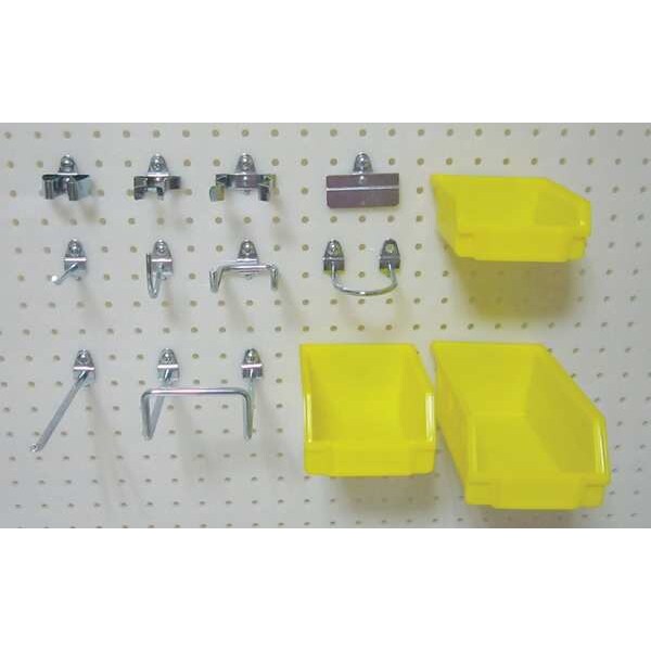 Pegboard Hook Assortment Kit, Number of Hooks 20, 1 in For Pegboard Hole Spacing, For Pegboard Hole Size 9/32 in, Surface, Screw-In Locking System, Circle For Pegboard Hole Shape, Steel, Silver, Yellow, Zinc-Plated, Hook Assortment Kit Accessory Type, (10) 2 1/2 in Single Rods, (10) 2 3/4 in Double Rods, (10) 6 in Single Rods, (10) Extended Spring Clips, (10) Plastic Hanging Bin Clips, (10) Standard Spring Clips, (5) Large Extended Spring Clips