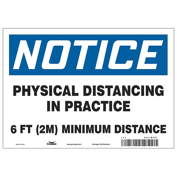 Covid 19 Sign 7X10, Notice Physical Dist, Sign Subject Matter Coronavirus Prevention, Height 7 in, Width 10 in, Sign Material Polyester, Sign Mounting Style Adhesive Surface, Header Notice, Legend Physical Distancing In Practice 6Ft (2m) Minimum Distance, Printed Language English