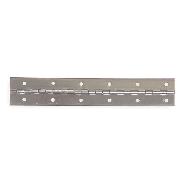 Piano Hinge, Ligature Resistant No, Aluminum Material, 180 Degrees Range of Motion, Aluminum Finish, With Holes, Non Handed Orientation, 1/2 in Overall Knuckle Height, 72 in Door Leaf Height, 72 in Frame Leaf Height, 1 in Door Leaf Width, 1 in Frame Leaf Width, 0.06 in Door Leaf Thickness, 0.06 in Frame Leaf Thickness, Length 6 ft, Not Included Hardware, 2 in Hole Spacing, 36 Holes per Leaf, Full Surface Mounting, 1/8 in Pin Dia., Aluminum Pin Material, Nonremovable Pin Type, 2 in Overall Width