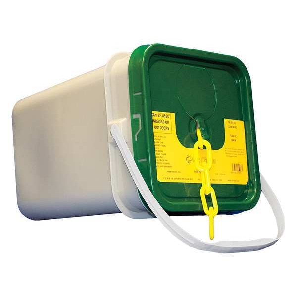 Plastic Chain, Length 160 ft, Color Yellow, Material Polyethylene, Finish Gloss, Link Outside Length 1.9 in, Link Outside Width 1.1 in, Link Inside Length 1.3 in, Link Inside Width 0.5 in, Reflectivity Non-Reflective, Link Thickness 0.2 in, Indoor/Outdoor Usage Indoor, Outdoor, For Use With Chain Stanchions, Cone Connectors, Poles, Weight 13 lb, Resistance Properties Rust Resistant, UV Resistant, Standards WBENC Certified, Manufacturer Warranty Length 5 yr