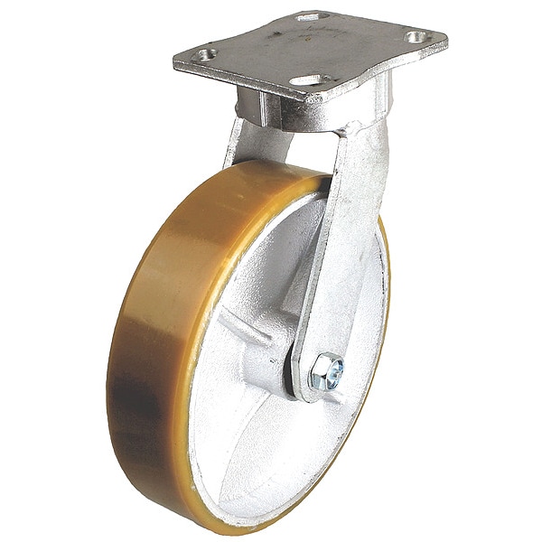 Swivel, Plate Caster, Load Rating 1250 lb, Swivel Lock Type No Lock Included, Wheel Dia. 8 in, Wheel Width 2 in, Wheel/Tread Material Polyurethane, Wheel Core Material Polyurethane, Non-Marking Yes, Number of Wheels 1, Caster Brake Type No Brake, Tread Shape Standard