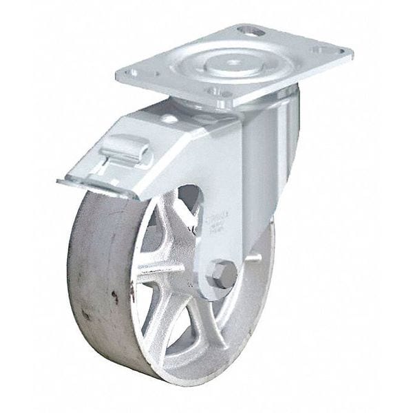 Swivel, Plate Caster, Load Rating 1250 lb, Swivel Lock Type No Lock Included, Wheel Dia. 8 in, Wheel Width 2 in, Wheel/Tread Material Iron, Wheel Core Material Iron, Non-Marking Yes, Number of Wheels 1, Caster Brake Type Total Lock, Tread Shape Standard