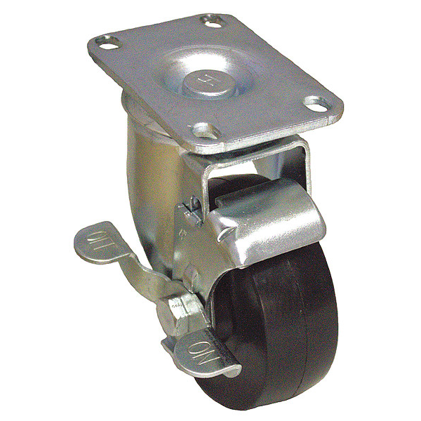 Swivel, Plate Caster, Load Rating 150 lb, Swivel Lock Type No Lock Included, Wheel Dia. 4 in, Wheel Width 1 1/4 in, Wheel/Tread Material Rubber, Wheel Core Material Rubber, Non-Marking No, Number of Wheels 1, Caster Brake Type Side Brake, Tread Shape Standard