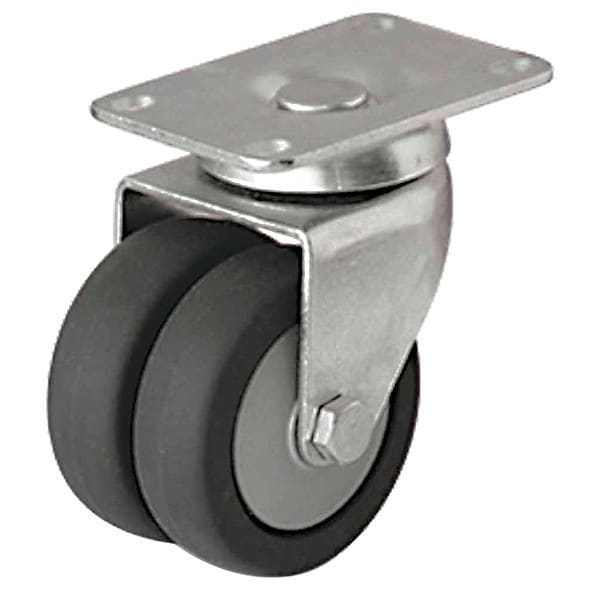 Swivel, Plate Caster, Load Rating 220 lb, Swivel Lock Type No Lock Included, Wheel Dia. 3 in, Wheel Width 29/32 in, Wheel/Tread Material Thermoplastic Rubber, Wheel Core Material Polyolefin, Non-Marking Yes, Number of Wheels 2, Caster Brake Type No Brake, Tread Shape Standard