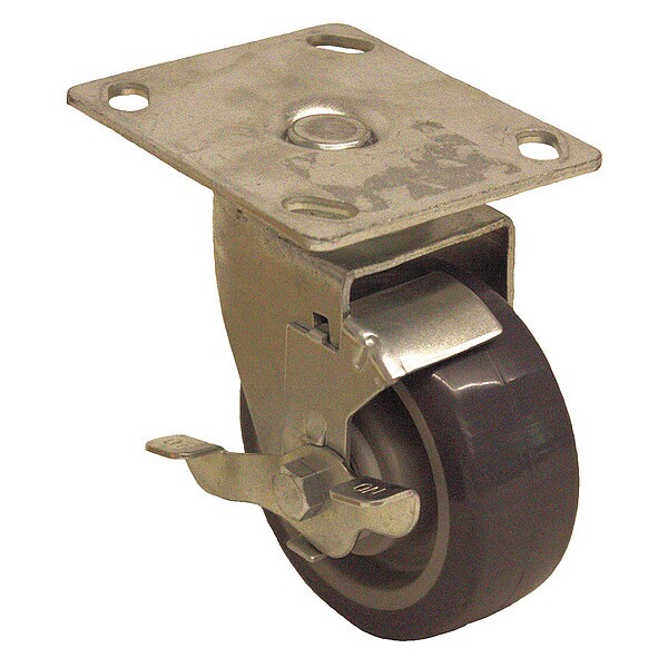 Swivel, Plate Caster, Load Rating 240 lb, Swivel Lock Type No Lock Included, Wheel Dia. 5 in, Wheel Width 1 5/16 in, Wheel/Tread Material Rubber, Wheel Core Material Polyolefin, Non-Marking Yes, Number of Wheels 1, Caster Brake Type Side Brake, Tread Shape Standard